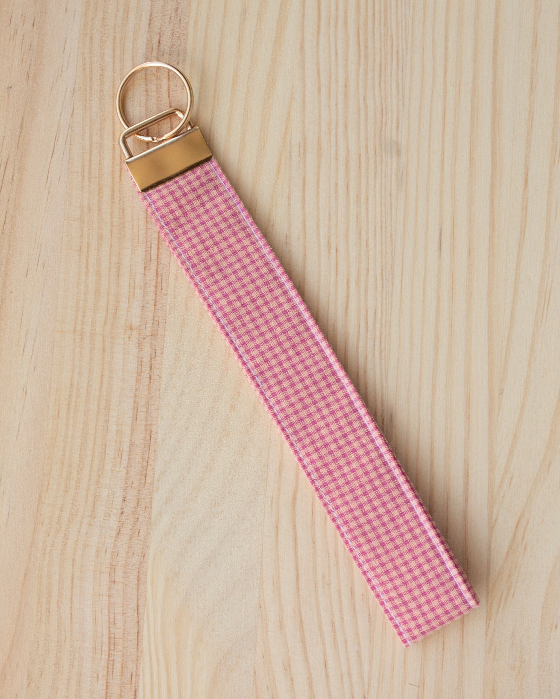 Llavero mini cuadros vichy bicolor orquidea